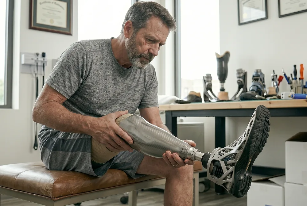 - Skin irritation during activity: Friction inside the socket can cause redness or soreness. Taking short breaks and adjusting prosthetic socks can help reduce pressure.